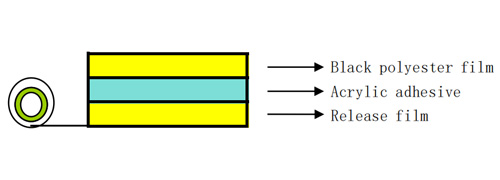 Product description: It is made of imported black PET as the base material, coated with black or transparent acrylic adhesive, and bonded with release film.
