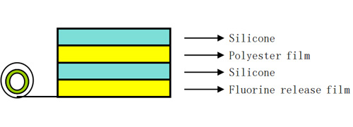 Product Description: It is made of polyester film as the base material, with double-sided adhesive backing and release film attached.