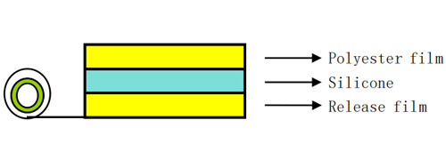 Product Description2: It is made of polyester film as the base material, with adhesive backing on one side and release film attached.
