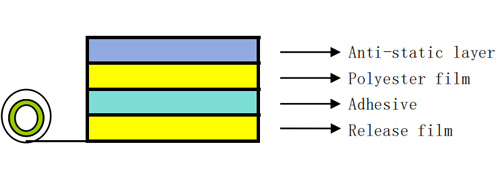 Product description: It is made by coating anti-static liquid on one side of polyester film and adhesive on the other side, and then attaching release film.