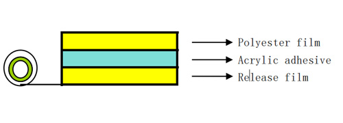 Product Description: It is made by coating acrylic adhesive on one side of polyester film as the base material and bonding it with release film.