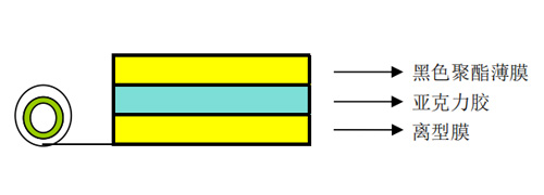 产品描述:以进口的黑色PET为基材,涂布黑色亚克力胶水,并贴合离型膜制备而成。