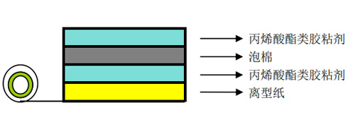 产品描述:以超薄闭孔电子交联聚乙烯发泡材料为基材,双面涂布高粘性丙烯酸胶水,并贴合离型纸膜而成。