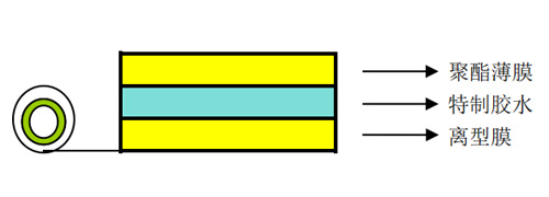 产品描述:以聚酯薄膜为基材,单面涂布特制胶水并贴合离型膜制备而成。