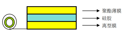 产品描述:以聚酯薄膜为基材单面涂布硅胶,并贴合离型膜而成。